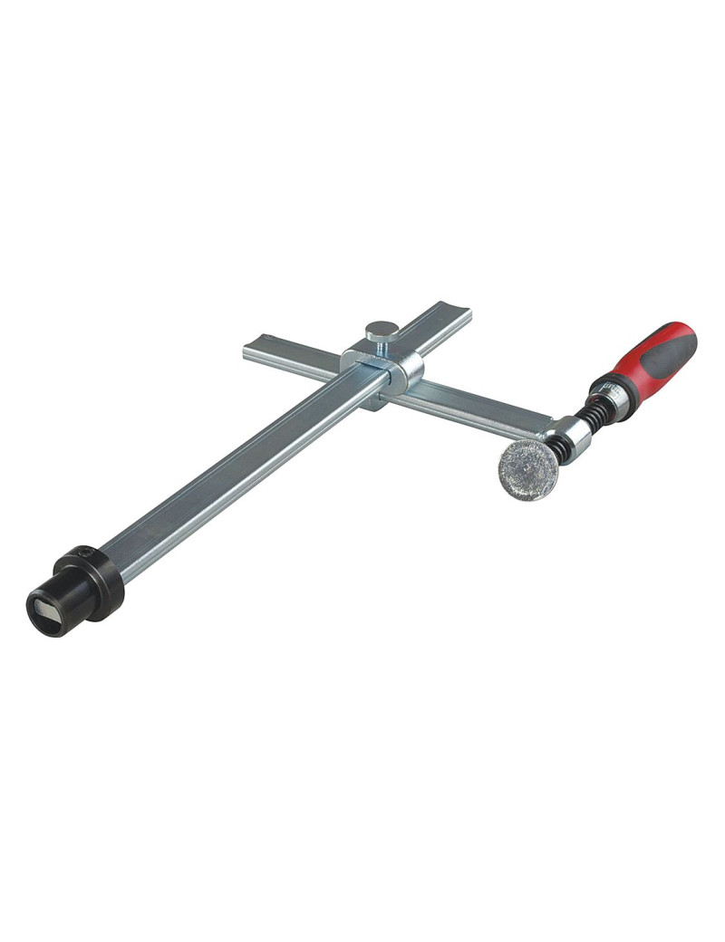 Veľmi kvalitná dvojkomponentná rukoväť, so zaobleným koncom aj kolíková rukoväť. Presné vreteno s trapézovým závitom a hladkým chodom. Prítlačná doštička vymeniteľná bez nástrojov